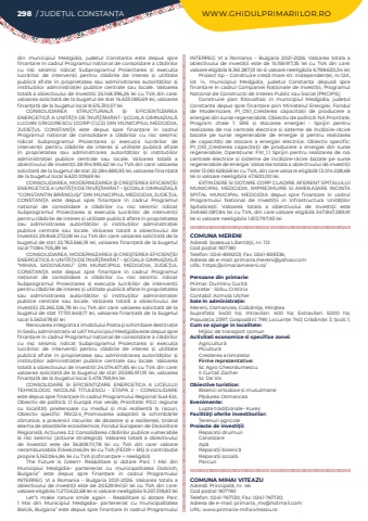 298 / JUDE%u021aUL CONSTAN%u021aA WWW.GHIDULPRIMARIILOR.ROdin municipiul Medgidia, jude%u021bul Constanta este depus spre finan%u021bare %u00een cadrul Programul na%u021bional de consolidare a cl%u0103dirilor cu risc seismic ridicat Subprogramul Proiectarea %u0219i execu%u021bia lucr%u0103rilor de interven%u021bii pentru cl%u0103dirile de interes %u0219i utilitate public%u0103 aflate %u00een proprietatea sau administrarea autorit%u0103%u021bilor %u0219i institu%u021biilor administra%u021biei publice centrale sau locale. Valoarea total%u0103 a obiectivului de %u00eenvesti%u021bii 25.148.396,26 lei cu TVA din care: valoarea solicitat%u0103 de la bugetul de stat 16.633.085,69 lei, valoarea finan%u021bat%u0103 de la bugetul local 8.515.310,57 leiCONSOLIDAREA STRUCTURAL%u0102 %u015eI EFICIENTIZAREA ENERGETIC%u0102 A UNIT%u0102%u0162II DE %u00ceNV%u0102%u0162%u0102M%u00c2NT- %u015eCOALA GIMNAZIAL%u0102 LUCIAN GRIGORESCU (CORP C1,C2) DIN MUNICIPIUL MEDGIDIA, JUDE%u0162UL CONSTAN%u0162A este depus spre finan%u021bare %u00een cadrul Programul na%u021bional de consolidare a cl%u0103dirilor cu risc seismic ridicat Subprogramul Proiectarea %u0219i execu%u021bia lucr%u0103rilor de interven%u021bii pentru cl%u0103dirile de interes %u0219i utilitate public%u0103 aflate %u00een proprietatea sau administrarea autorit%u0103%u021bilor %u0219i institu%u021biilor administra%u021biei publice centrale sau locale. Valoarea total%u0103 a obiectivului de %u00eenvesti%u021bii 28.914.995,62 lei cu TVA din care: valoarea solicitat%u0103 de la bugetul de stat 22.284.885,93 lei, valoarea finan%u021bat%u0103 de la bugetul local 6.630.109,69 leiCONSOLIDAREA, MODERNIZAREA %u015eI CRE%u015eTEREA EFICIEN%u0162EI ENERGETICE A UNIT%u0102%u0162II DE %u00ceNV%u0102%u0162%u0102M%u00c2NT %u2013 %u015eCOALA GIMNAZIAL%u0102 %u201cCONSTANTIN BR%u00c2NCU%u015eI%u201d DIN MUNICIPIUL MEDGIDIA, JUDE%u0162UL CONSTAN%u0162A este depus spre finan%u021bare %u00een cadrul Programul na%u021bional de consolidare a cl%u0103dirilor cu risc seismic ridicat Subprogramul Proiectarea %u0219i execu%u021bia lucr%u0103rilor de interven%u021bii pentru cl%u0103dirile de interes %u0219i utilitate public%u0103 aflate %u00een proprietatea sau administrarea autorit%u0103%u021bilor %u0219i institu%u021biilor administra%u021biei publice centrale sau locale. Valoarea total%u0103 a obiectivului de %u00eenvesti%u021bii 29.848.272,08 lei cu TVA din care: valoarea solicitat%u0103 de la bugetul de stat 22.763.566,19 lei, valoarea finan%u021bat%u0103 de la bugetul local 7.084.705,89 leiCONSOLIDAREA, MODERNIZAREA %u015eI CRE%u015eTEREA EFICIEN%u0162EI ENERGETICE A UNIT%u0102%u0162II DE %u00ceNV%u0102%u0162%u0102M%u00c2NT %u2013 %u015eCOALA GIMNAZIAL%u0102 %u201cMIHAIL SADOVEANU%u201d DIN MUNICIPIUL MEDGIDIA, JUDE%u0162UL CONSTAN%u0162A este depus spre finan%u021bare %u00een cadrul Programul na%u021bional de consolidare a cl%u0103dirilor cu risc seismic ridicat Subprogramul Proiectarea %u0219i execu%u021bia lucr%u0103rilor de interven%u021bii pentru cl%u0103dirile de interes %u0219i utilitate public%u0103 aflate %u00een proprietatea sau administrarea autorit%u0103%u021bilor %u0219i institu%u021biilor administra%u021biei publice centrale sau locale. Valoarea total%u0103 a obiectivului de %u00eenvesti%u021bii 23.265.326,78 lei cu TVA din care: valoarea solicitat%u0103 de la bugetul de stat 17.701.648,17 lei, valoarea finan%u021bat%u0103 de la bugetul local 5.563.678,61 leiRenovarea integrata a imobilului Posta %u015fi schimbare destina%u021bie %u00een Sediu administrativ al UAT Municipiul Medgidia este depus spre finan%u021bare %u00een cadrul Programul na%u021bional de consolidare a cl%u0103dirilor cu risc seismic ridicat Subprogramul Proiectarea %u0219i execu%u021bia lucr%u0103rilor de interven%u021bii pentru cl%u0103dirile de interes %u0219i utilitate public%u0103 aflate %u00een proprietatea sau administrarea autorit%u0103%u021bilor %u0219i institu%u021biilor administra%u021biei publice centrale sau locale. Valoarea total%u0103 a obiectivului de %u00eenvesti%u021bii 24.074.671,85 lei cu TVA din care: valoarea solicitat%u0103 de la bugetul de stat 20.595.911,91 lei, valoarea finan%u021bat%u0103 de la bugetul local 3.478.759,94 leiCONSOLIDARE SI EFICIENTIZARE ENERGETICA A LICEULUI TEHNOLOGIC NICOLAE TITULESCU - ETAPA 2 %u2013 CONSOLIDARE este depus spre finan%u021bare %u00een cadrul Programului Regional Sud-Est, Obiectiv de politic%u0103: O Europ%u0103 mai verde, Prioritate: P2.O regiune cu localit%u0103%u021bi prietenoase cu mediul %u0219i mai rezilient%u0103 la riscuri, Obiectiv specific: RSO2.4_Promovarea adapt%u0103rii la schimb%u0103rile climatice, a prevenirii riscurilor de dezastre %u0219i a rezilien%u021bei, %u021bin%u00e2nd seama de abord%u0103rile ecosistemice, Fondul European de Dezvoltare Regional%u0103, Ac%u021biunea 2.2 Consolidarea cl%u0103dirilor publice vulnerabile la risc seismic (ac%u021biune strategic%u0103). Valoarea total%u0103 a obiectivului de %u00eenvesti%u021bii este de 36.809.111,78 lei cu TVA din care: valoare nerambursabila 31.646.046,94 lei cu TVA (FEDR + BS) si contribu%u021bie proprie 5.163.064,84 lei cu TVA (cofinan%u021bare + neeligibil)The Future is Green!- Reabilitare %u0219i dotare Parc 1 Mai din Municipiul Medgidia%u2013 parteneriat cu municipalitatea Dobrich, Bulgaria%u201d este depus spre finan%u021bare in cadrul Programului INTERREG VI a Romania %u2013 Bulgaria 2021-2026. Valoarea totala a obiectivului de investi%u021bii este de 20.529.941,51 lei cu TVA din care: valoare eligibila 11.272.622,68 lei si valoare neeligibila 9.257.318,83 leiLet%u201ds make nature smile again - Reabilitare %u0219i dotare Parc 1 Mai din Municipiul Medgidia%u2013 parteneriat cu municipalitatea Balcik, Bulgaria%u201d este depus spre finan%u021bare in cadrul Programului INTERREG VI a Romania %u2013 Bulgaria 2021-2026. Valoarea totala a obiectivului de investi%u021bii este de 15.159.917,35 lei cu TVA din care: valoare eligibila 8.361.287,01 lei si valoare 