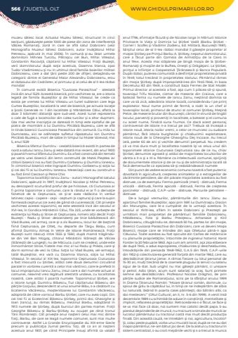 566 / JUDE%u021aUL OLT WWW.GHIDULPRIMARIILOR.ROmuzeu s%u0103tesc local. Actualul Muzeu S%u0103tesc, structurat %u00een cinci sec%u0163iuni, g%u0103zduie%u015fte peste 1000 de piese din zona de interferen%u0163%u0103 V%u00e2lcea Romana%u0163i, zon%u0103 %u00een care se afl%u0103 satul Dobriceni (vezi Monografia Muzeul S%u0103tesc Dobriceni, autor %u00eenv%u0103%u0163%u0103torul Mihai Petrescu, ap%u0103rut%u0103 %u00een mai 2006). %u00cen comun%u0103 %u015fi-au l%u0103sat urmele domnitorii Mihnea Turcitu, P%u0103tra%u015fcu cel Bun, Mihai Viteazul, Constantin Racovi%u0163%u0103, c%u0103pitanii lui Mihai Viteazul, Fra%u0163ii Buze%u015fti, verii domnitorului dup%u0103 so%u0163ia acestuia, Doamna Stanca, apoi Tudor Vladimirescu %u015fi nu %u00een ultimul r%u00e2nd familia boierilor militari Dobriceanu, care a dat %u0163%u0103rii peste 200 de ofi%u0163eri, deta%u015f%u00e2ndu-se categoric dintre ei Generalul Maior Alexandru Dobriceanu, erou al r%u0103zboiului din Cadrilater, al primului %u015fi al celui de al II-lea r%u0103zboi mondial%u00cen comun%u0103 exist%u0103 Biserica %u201cCuvioasa Paraschiva%u201d - atestat%u0103 %u00eenc%u0103 din anul 1529. Aceast%u0103 biseric%u0103, prin vechimea sa, are o istoria legat%u0103 de familia Buze%u015ftilor %u015fi de Mihai Viteazul. Se crede ca exista pe vremea lui Mihai Viteazu un tunel subteran care lega Curtea Buze%u015ftilor, localizat%u0103 la vest de biseric%u0103, pe actuala loca%u0163ie a %u015ecolii Generale nr. 1 din localitate %u015fi M%u0103n%u0103stirea C%u0103lui, aflat%u0103 la doar 3 kilometri distan%u0163%u0103 spre sud-vest. Acest tunel reprezenta o cale de fug%u0103 a localnicilor din calea turcilor %u015fi a altor du%u015fmani. Cea mai veche inscrip%u0163ie ce dateaz%u0103 %u00een timp este epitaful de pe piatra de morm%u00e2nt a lui Dumitru P%u00eerc%u0103lab Buzescu, care se afl%u0103 %u00een tinda bisericii Cuvincioasa Paraschiva din comun%u0103. Cu mila lui Dumnezeu, aici se odihne%u015fte sufletul r%u0103posatului Ion Dumitru P%u00eerc%u0103lab Buzescu, mort de sabie %u00een timpul lui Moise Voievod, mai 5, anul 1529Biserica Sfantul Dumitru - cealalt%u0103 biseric%u0103 exist%u0103 %u00een partea de nord a satului Iancu Jianu %u015fi este datat%u0103 mai recent, din anul 1900 %u015fi poart%u0103 hramul Sf%u00e2ntului Dumitru. Ea a fost construit%u0103 din temelii pe vatra unei bisericii din lemn construit%u0103 de Matei Pieptea iar ctitorii bisericii noi au fost Dumitru Corbeanu %u015fi Dumitru Ionescu. %u00cen cimintirul bisericii este %u00eengropat Dumitru Corbeanu %u015fi so%u0163ia lui %u015fi cei doi fii ai lui Dumitru Ionescu. Meseria%u015fii care au construit-o au fost Emil Cascaon %u015fi Petre ChisToponimia localit%u0103%u0163ii Iancu Jianu - autorii Monografiei satului Dobriceni, ap%u0103rut%u0103 %u00een 1997, %u00eenv%u0103%u0163%u0103torii Nicolae %u015fi Mihai Petrescu, au descoperit scutur%u00e2nd praful de pe hrisoave, c%u0103 Ciuturoaia ar fi prima toponimie a comunei, care la r%u00e2ndul ei ar fi o deriva%u0163ie fonetic%u0103 de la Cepturoaia, ce %u015fi-ar avea r%u0103d%u0103cina %u00een verbul latinesc capio - capere - cepi - ceptum (a captura) %u015fi care la supin formeaz%u0103 cepturus (ce avea de g%u00e2nd s%u0103 cucereasc%u0103). C%u00e2t prive%u015fte vechimea acestei toponimii, ea este atestat%u0103 %u00eenc%u0103 din secolul al XVI-lea, %u00een Condica M%u00e2n%u0103stirii C%u0103lui, fila 223, unde se vorbe%u015fte de existen%u0163a lui Radu %u015fi Stroe ot Cepturoaia, nimeni al%u0163ii dec%u00e2t Fra%u0163ii Buze%u015fti - Radu %u015fi Stroe- descenden%u0163i pe linie b%u0103rb%u0103teasc%u0103 din Vlad Buzea, vel arma%u015f, care %u015fi-a zis Buzescu, locul lor de ba%u015ftin%u0103 fiind Cepturoaia, pe Olte%u0163, nu departe de T%u00e2rgu Bal%u015fu, cum afirm%u0103 Dumitru Alma%u015f %u00een Vetre de Istorie Rom%u00e2neasc%u0103. Fra%u0163ii Buze%u015fti sunt n%u0103scu%u0163i %u00eentre 1555 %u015fi 1560, dup%u0103 mam%u0103 tr%u0103g%u00e2nduse din Vel Ban Mogo%u015f, ctitorul M%u00e2n%u0103stirii St%u0103ne%u015fti de V%u00e2lcea (St%u0103ne%u015ftii de Lunge%u015fti, nu de M%u0103ciuca, cum se credea), unde este %u00eenmorm%u00e2ntat Stroe, fratele mai mic al lui Radu %u015fi Preda, care-%u015fi dorm somnul de veci la C%u0103lui. So%u0163ia lui Vlad Buzea, vel-arma%u015ful, tat%u0103l Buze%u015ftilor, era var%u0103 cu Doamna Stanca, so%u0163ia lui Mihai Viteazul. %u00cen secolul al XIX-lea, toponimia Cepturoaia Ciuturoaia a fost %u00eenlocuit%u0103 cu %u015etirbei, ast%u0103zi cele dou%u0103 denumiri circul%u00e2nd paralel %u00een vorbirea curent%u0103 a celor mai v%u00e2rstnici, care le prefer%u0103 %u00een locul impropriului Iancu Jianu, insul care a dat numele actual al comunei, neav%u00eend vreo leg%u0103tur%u0103 atestat%u0103 undeva, cu localitatea noastr%u0103, care ast%u0103zi %u00eei poart%u0103 numele. Toponimicul %u015etirbei, are o istorie lung%u0103. Dumitru Bibescu, fiul c%u0103pitanului Bibescu din p%u0103r%u0163ile Gorjului, descendent al unui anume Bibu, s-a c%u0103s%u0103torit cu Ecaterina V%u0103c%u0103rescu, mo%u015ftenitoarea lui Constantin V%u0103c%u0103rescu, adoptat%u0103 de c%u0103tre vornicul Barbu %u015etirbei, care nu avea copii. Din cei trei fii ai Ecaterinei Bibescu %u015etirbey, primii doi, Gheorghe %u015fi Ioan (Iancu), au r%u0103mas Bibescu, mezinul Barbu, adopt%u00e2nd %u00een 1913 numele de %u015etirbey, dup%u0103 bunicul din partea mamei. Fra%u0163ii Georghe Bibescu %u015fi Barbu-%u015etirbey au ocupat pe r%u00e2nd tronul T%u0103rii Rom%u00e2ne%u015fti. C%u00e2t prive%u015fte anul na%u015fterii celui mai mic dintre fra%u0163i, Barbu, de care se leag%u0103 numele comunei, sunt mai multe controverse. Astfel La Grande Encyclopedie du XIX-eme Siecle precum %u015fi publica%u0163ia Jurnal pentru To%u0163i, d%u0103 ca an al na%u015fterii acestuia anul 1801, pe c%u00e2nd Principele %u00eensu%u015fi afirm%u0103 ca valabil anul 1796, afirma%u0163ie f%u0103cut%u