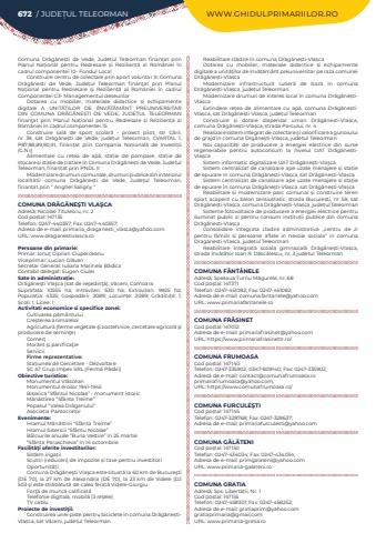 672 / JUDE%u021aUL TELEORMAN WWW.GHIDULPRIMARIILOR.ROComuna Dr%u0103g%u0103ne%u0219ti de Vede, Jude%u021bul Teleorman%u00a0 finan%u021bat prin Planul Na%u021bional pentru Redresare %u0219i Rezilien%u021b%u0103%u00a0 al Rom%u00e2niei %u00een cadrul componentei 10- Fondul LocalConstruire centru de colectare prin aport voluntar %u00een Comuna Dr%u0103g%u0103ne%u0219ti de Vede, Jude%u021bul Teleorman%u00a0 finan%u0163at prin Planul Na%u021bional pentru Redresare %u0219i Rezilien%u021b%u0103%u00a0 al Rom%u00e2niei %u00een cadrul Componentei C3- Managementul de%u0219eurilorDotarea cu mobilier, materiale didactice %u0219i echipamente digitale A UNIT%u0102%u021aILOR DE I%u00ceNV%u0102%u021a%u0102M%u00c2NT PREUNIVERSITAR DIN COMUNA DR%u0102G%u0102NE%u0218TI DE VEDE, JUDE%u021aUL TELEORMAN finan%u0163at prin Planul Na%u021bional pentru Redresare %u0219i Rezilien%u021b%u0103%u00a0 al Rom%u00e2niei %u00een cadrul componentei 15Construire sal%u0103%u00a0 de sport %u0219colar%u0103%u00a0 - proiect pilot, str G%u0103rii, nr 39, sat Dr%u0103g%u0103ne%u0219ti de Vede, jude%u021bul Teleorman, CVARTAL 1, P87,88,89,90,91, finan%u021bat prin Compania Na%u021bional%u0103%u00a0 de Investi%u021bii (C.N.I)Alimentare cu re%u021bea de ap%u0103, sta%u021bie de pompare, sta%u021bie de stocare %u0219i sta%u021bie de tratare %u00een Comuna Dr%u0103g%u0103ne%u0219ti de Vede, Jude%u021bul%u00a0 Teleorman, finan%u021bat prin PNDL IIModernizare drumuri comunale, drumuri publice din interiorul localit%u0103%u021bii comuna%u00a0 Dr%u0103g%u0103ne%u0219ti de Vede, Jude%u021bul Teleorman, finan%u021bat prin %u201c Anghel Saligny %u201cCOMUNA DR%u0102G%u0102NE%u015eTI VLA%u015eCAAdres%u0103: Nicolae Titulescu, nr. 2Cod po%u0219tal: 147135Telefon: 0247-440357; Fax: 0247-440357; Adresa de e-mail: primaria_draganesti_vlasca@yahoo.comURL: www.draganestivlasca.roPersoane din primarie:Primar:%u00a0Ionu%u0163 Ciprian CiuperceanuViceprimar: Lucian Gl%u0103vanSecretar General: Iuliana Marinela B%u0103dicaContabil delegat: Eugen CiuleiSate %u00een administra%u021bie:Dr%u0103g%u0103ne%u015fti Vla%u015fca (sat de re%u015fedin%u0163%u0103), V%u0103ceni, ComoaraSuprafa%u021ba:%u00a0 10555 ha; Intravilan:%u00a0 630 ha; Extravilan:%u00a0 9925 ha; Popula%u021bia:%u00a0 4325; Gospod%u0103rii:%u00a0 2089; Locuin%u021be:%u00a0 2089; Gr%u0103dini%u021be:%u00a0 1; %u0218coli:%u00a01; Licee:%u00a01; Activitati economice si specifice zonei:Cultivarea p%u0103m%u00e2ntuluiCre%u015fterea animalelorAgricultur%u0103 (ferme vegetale %u015fi zootehnice, cercetare agricol%u0103 %u015fi producere de semin%u0163e)Comer%u0163Mor%u0103rit %u015fi panifica%u0163ieServiciiFirme reprezentative:Sta%u021biunea de Cercetare - DezvoltareSC AT Grup Impex SRL (Ferm%u0103 P%u0103s%u0103ri)%u00a0Obiective turistice:Monumentul Vl%u0103scean%u00a0Monumentul eroilor 1941-1945Biserica %u201cSf%u00e2ntul Nicolae%u201d - monument istoricM%u0103n%u0103stirea %u201cSf%u00e2nta Treime%u201dPopasul %u201cValea Dr%u0103ganului%u201dAsocia%u021bia PantocratorEvenimente:Hramul M%u0103n%u0103stirii %u201cSf%u00e2nta Treime%u201dHramul bisericii %u201cSf%u00e2ntu Nicolae%u201dB%u00e2lciurile anuale %u201cBuna Vestire%u201d %u00een 25 martie%u201cSf%u00e2nta Paraschieva%u201d %u00een 14 octombrieFacilit%u00e3%u0163i oferite investitorilor:Sistem iriga%u021biiScutiri (reduceri) de impozite %u0219i taxe pentru investitoriOportunit%u0103%u021bi:Comuna Dr%u0103g%u0103ne%u015fti Vla%u015fca este situat%u0103 la 60 km de Bucure%u015fti (DE 70), la 27 km de Alexandria (DE 70), la 23 km de Videle (DJ 503%u00a0%u015fi este str%u0103b%u0103tut%u0103 de calea ferat%u0103 Videle-GiurgiuFor%u0163%u0103 de munc%u0103 calificat%u0103Telefonie digital%u0103, mobil%u0103 (3 re%u0163ele)TV cabluProiecte de investi%u0163ii:Construirea unei piste pentru biciclete %u00een comuna Dr%u0103g%u0103ne%u0219tiVla%u0219ca, sat V%u0103ceni, jude%u021bul TeleormanReabilitare cl%u0103dire %u00een comuna%u00a0Dr%u0103g%u0103ne%u0219ti-Vla%u0219caDotarea cu mobilier, materiale didactice %u0219i echipamente digitale a unit%u0103%u021bilor de %u00eenv%u0103%u021b%u0103m%u00e2nt preuniversitar pe raza comunei Dr%u0103g%u0103ne%u0219ti-Vla%u0219caModernizare infrastructur%u0103 rutier%u0103 de baz%u0103 %u00een comuna Dr%u0103g%u0103ne%u0219ti-Vla%u0219ca, jude%u021bul TeleormanModernizare drumuri de interes local %u00een comuna Dr%u0103g%u0103ne%u0219tiVla%u0219caExtindere re%u021bea de alimentare cu ap%u0103, comuna Dr%u0103g%u0103ne%u0219tiVla%u0219ca, sat Dr%u0103g%u0103ne%u0219ti-Vla%u0219ca, jude%u021bul TeleormanConstruire %u0219i dotare dispensar uman Dr%u0103g%u0103ne%u0219ti-Vla%u0219ca, comuna Dr%u0103g%u0103ne%u0219ti-Vla%u0219ca, strada Parcului, nr. 4Realizare sistem integrat de colectare %u0219i valorificare a gunoiului de grajd %u00een comuna Drg%u0103ne%u0219ti-Vla%u0219ca, jude%u021bul TeleormanNoi capacit%u0103%u021bi de producere a energiei electrice din surse regenerabile pentru autoconsum la nivelul UAT Dr%u0103g%u0103ne%u0219tiVla%u0219caSistem informatic digitalizare UAT Dr%u0103g%u0103ne%u0219ti-Vla%u0219caSistem centralizat de canalizare ape uzate menajere %u0219i sta%u021bie de epurare %u00een comuna Dr%u0103g%u0103ne%u0219ti-Vla%u0219ca, sat Dr%u0103g%u0103ne%u0219ti-Vla%u0219caSistem centralizat de canalizare ape uzate menajere %u0219i sta%u021bie de epurare %u00een comuna Dr%u0103g%u0103ne%u0219ti-Vla%u0219ca, sat Dr%u0103g%u0103ne%u0219ti-Vla%u0219caReabilitare %u0219i modernizare parc comunal %u0219i construire teren sport acoperit cu balon tensiostatic, strada Bucure%u0219ti, nr. 59, sat Dr%u0103g%u0103ne%u0219ti-Vla%u0219ca, comuna Dr%u0103g%u0103ne%u0219ti-Vla%u0219ca, jude%u021bul TeleormanSisteme fotovoltaice de producere a energiei electrice pentru iluminat public %u0219i pentru consum institu%u021bii publice din comuna Dr%u0103g%u0103ne%u0219ti-Vla%u0219caConsolidare integrata cladire administrativa ,,centru de zi pentru familii si persoane aflate in nevoie sociala%u201d in comuna Draga